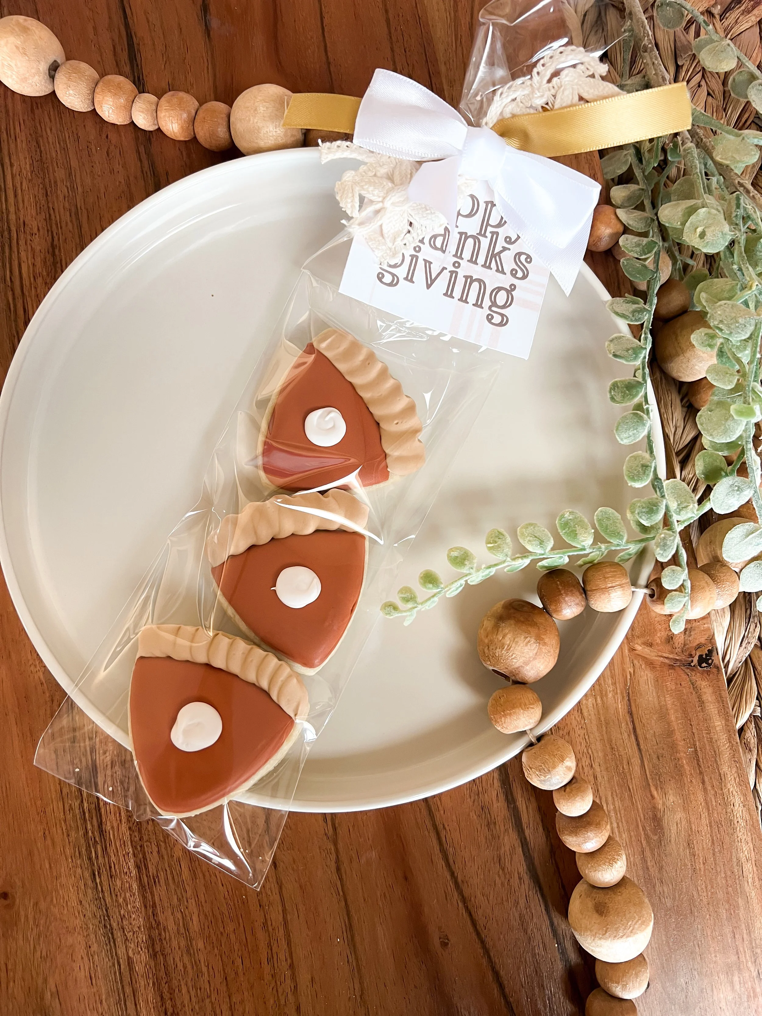 November Pre-Sale › 3pc Mini Pie Slices Image 1 of 1 3pc Mini Pie Slices $7.50 Mini sugar cookies with royal icing Mini cookies measure 2-2.5 inches on longest side Pickup Date: 11/25 convenient pickup 11/26 convenient pickup Quantity: Add To Cart Added! Mini sugar cookies with royal icing Mini cookies measure 2-2.5 inches on longest side